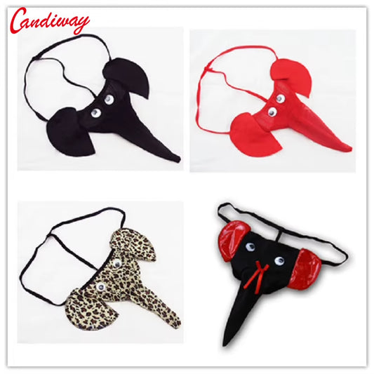 Candiway Men Mini Panty Lover Briefs Sexy Lingerie Bodysuit G-String Underpant Elephant Cartoon Pattern More Adult Fun Sex Game